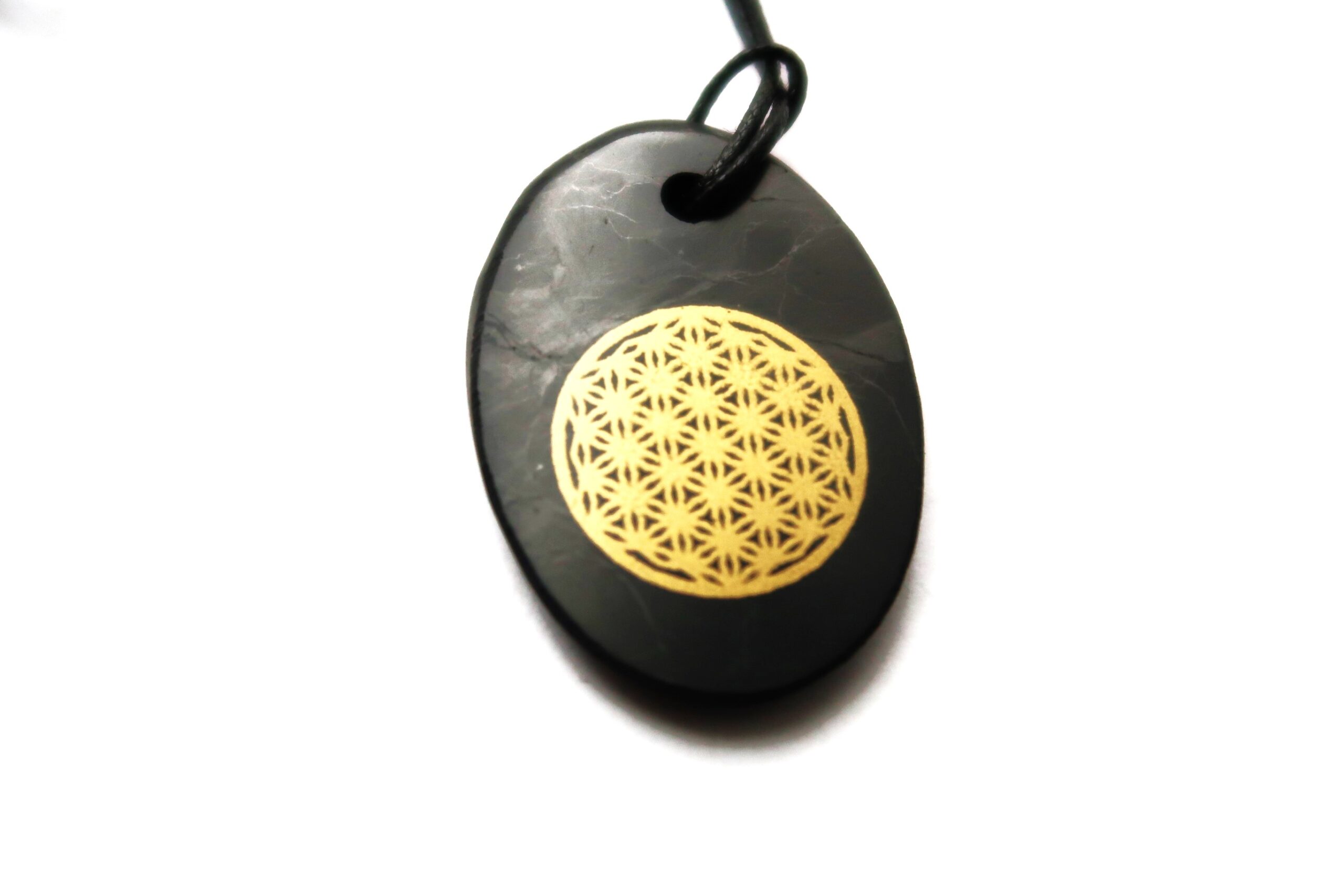 Ervaar de Energie van de Ronde Shungite Hanger met Gouden Levensbloem